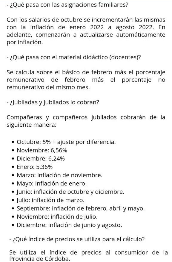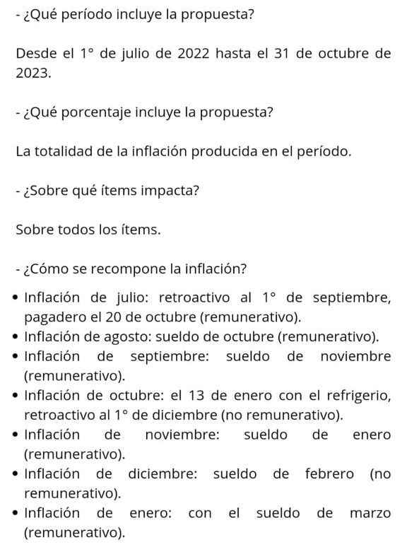 El período acordado abarca desde el 1° de Julio de 2022 hasta el 31 de Octubre de 2023 y, tal como se había anunciado, la Municipalidad de córdoba reconoce todo el porcentaje inflacionario.