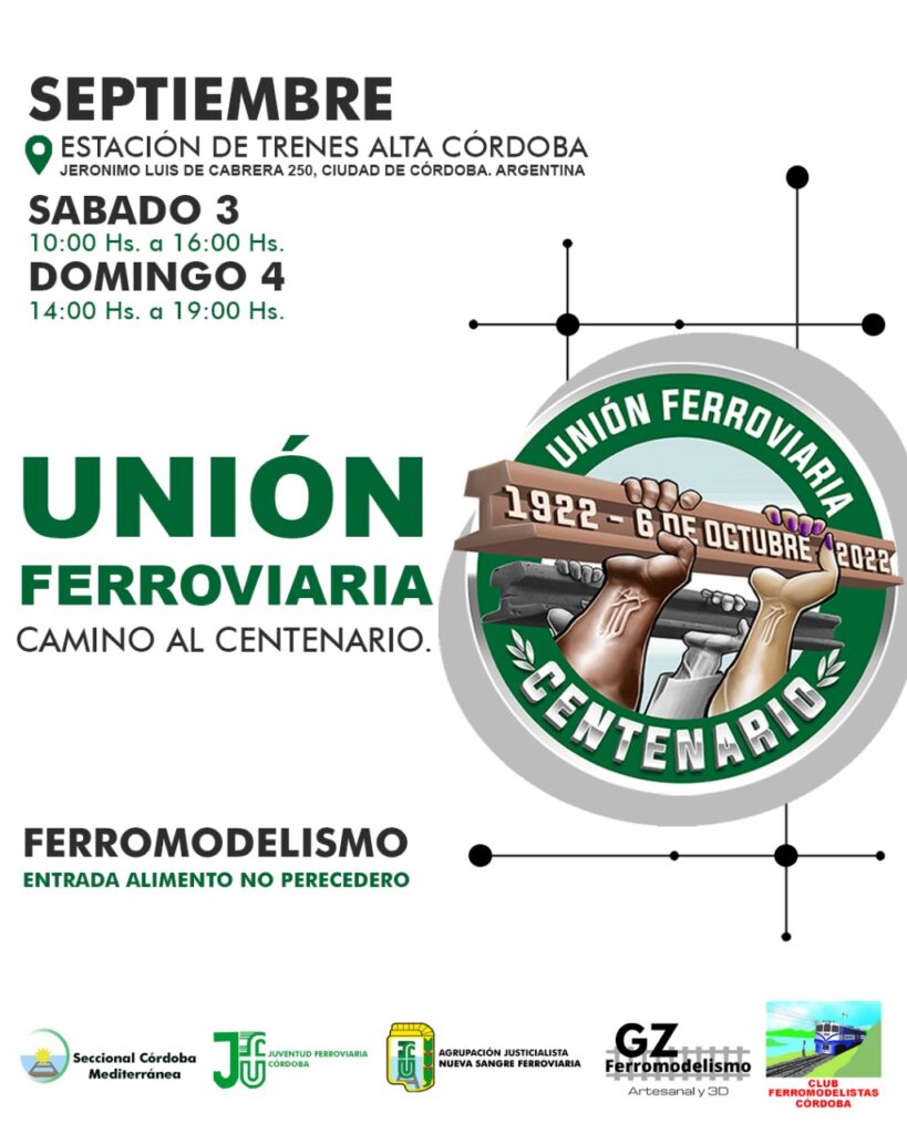 La Unión Ferroviaria de Córdoba invita a las jornadas de ferromodelismo el próximo sábado 3 y domingo 4 de septiembre en la estación de trenes de Alta Córdoba.